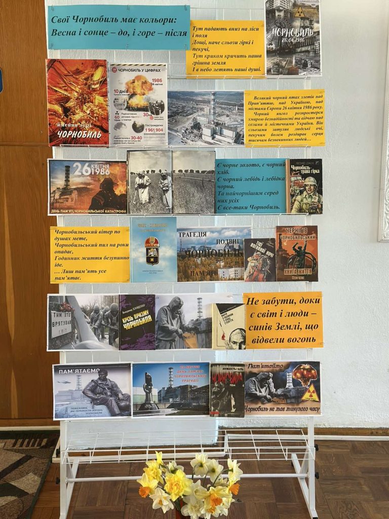 Напередодні роковин Чорнобильської трагедії в бібліотеці представлена тематична виставка-пам’ять «Свої Чорнобиль має кольори: Весна і сонце – до, і горе – після», щоб нагадати про важливість пам’яті й уроки минулого.